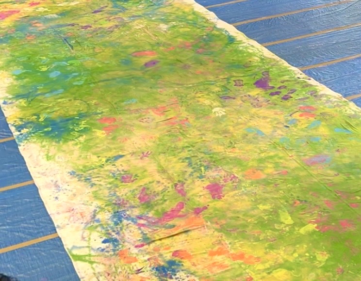高七小で使われていたホウキやモップを使って、絵具やペンキで校舎の廊下を色鮮やかに彩ります。どんな作品になるかは参加してくれるみんな次第!
