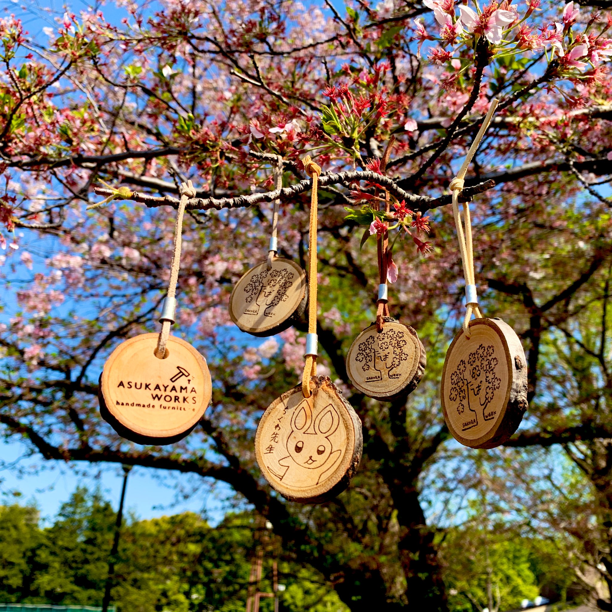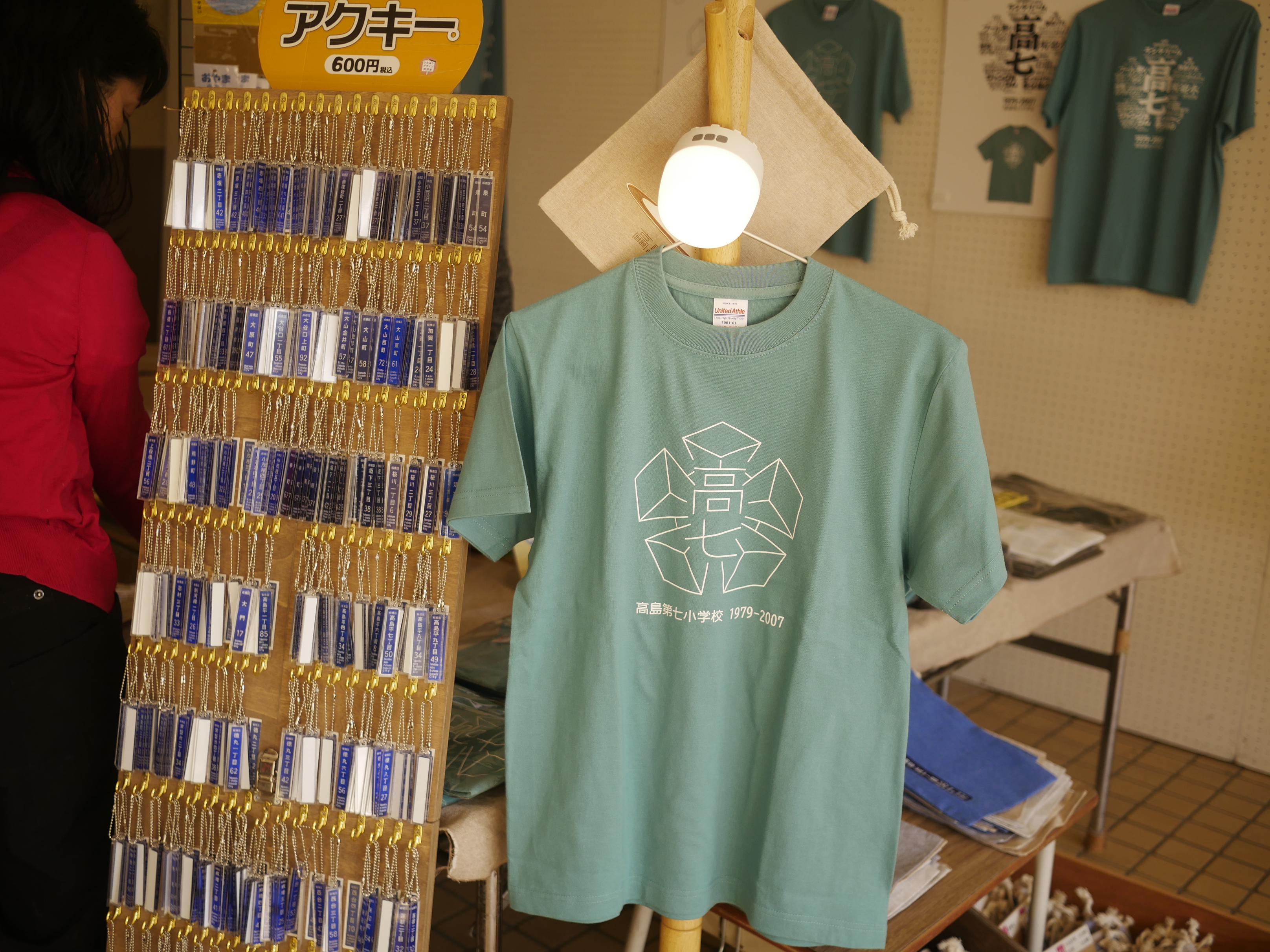 高七小Tシャツなどのグッズ販売と、桜の枝を使った根付のワークショップです。
