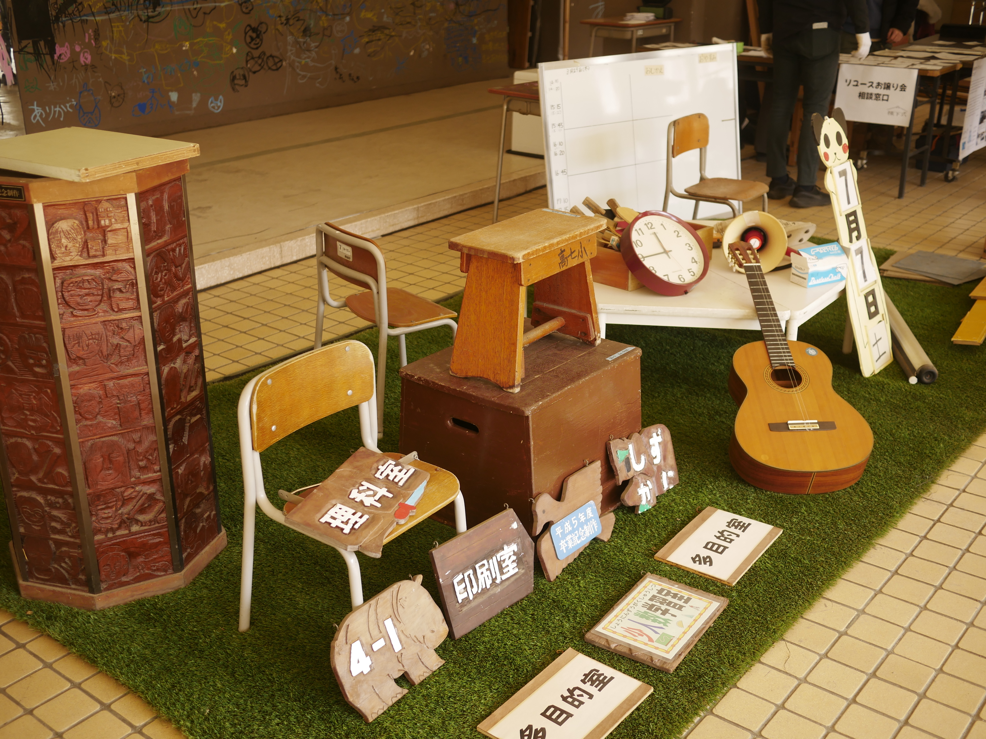 高七小の建材や備品をアップサイクルしたプロダクトやアート作品を体験・購入できます。